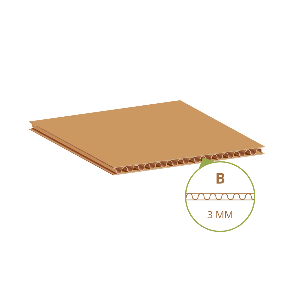 Der grundlegende Aufbau von Wellpappe ist immer gleich: Sie besteht aus einer Wellenbahn, die mit zwei glatten Pappbahnen verklebt ist. Die so entstehenden Wellenberge- und Täler erzeugen innerhalb dieses Konstrukts kleine Hohlräume, die wie eine Art Luftpolster wirken und dadurch die Stabilität der Wellpappe erhöhen.