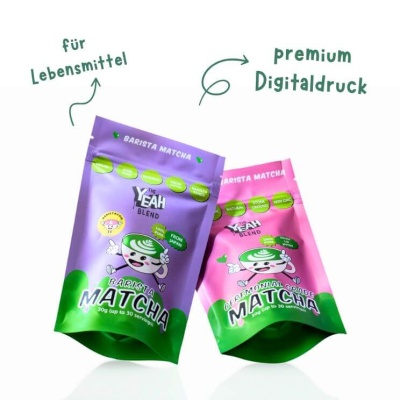 Unsere Standboden- und Flachbeutel schützen Deine Produkte und präsentieren sie optimal am POS. Wähle zwischen recycelbaren Monomaterialien (PP, PE, Papier) oder PET/PE-Verbunden. Dein Design drucken wir im Digital- oder Flexodruck – auch mit Metallic-Effekten oder Sichtfenstern – in 10–14 Werktagen. Zusätzlich bieten wir Verpackung auf Rolle für Flowpacks, Riegel oder Sachets.