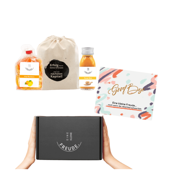 Mit der Goodbye Box kann den Kolleginnen & Kollegen beim Offboarding noch einmal "Danke" gesagt werden. Passend zusammengestellt und mit Ausblick auf die neuen Herausforderungen, werden die besten Wünsche für die Zukunft vereint.