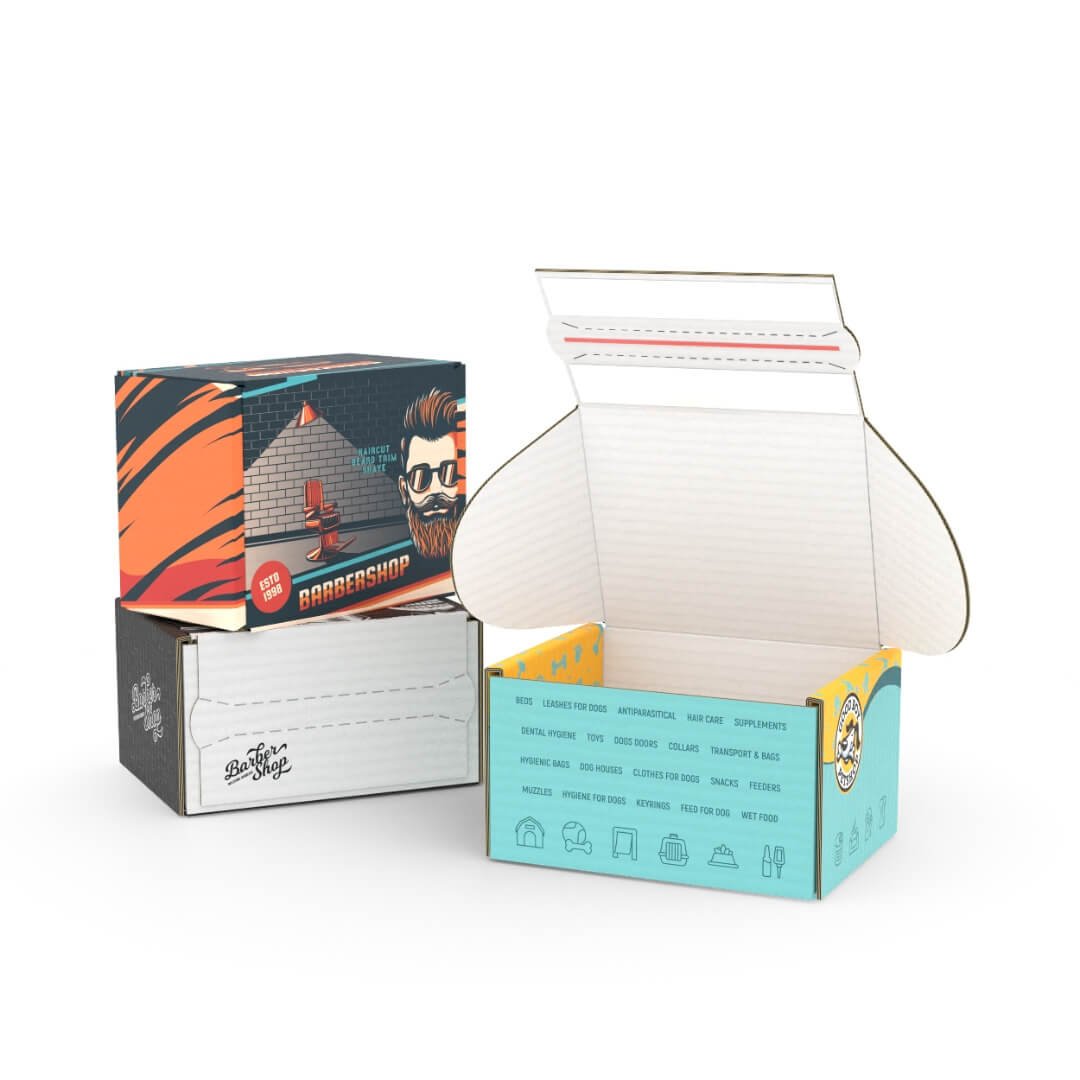 Deine Klappdeckelkartons mit Klebestreifen werden hochwertig im Digital-, Offset- oder Flexodruck bedruckt – vollflächig, brillant und in deiner Markenoptik.