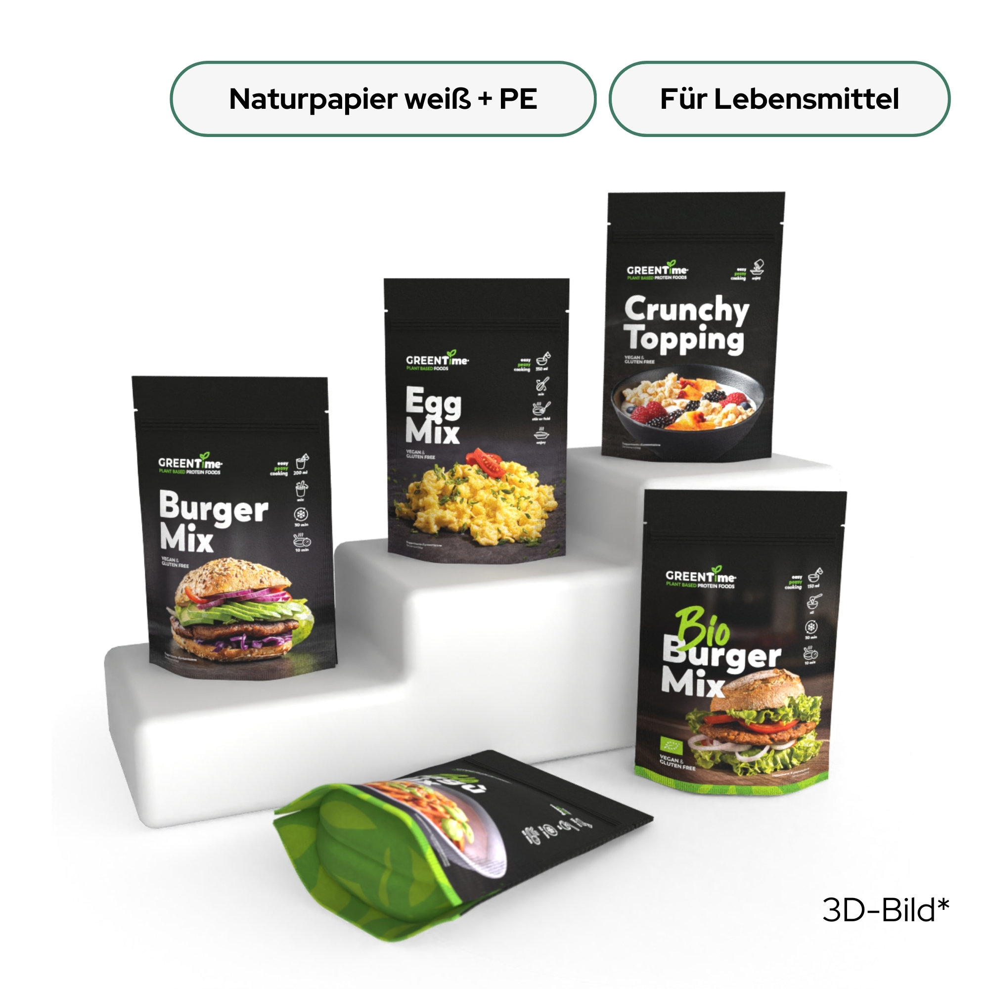 Unsere Druckverschlussbeutel bieten flexible Verpackungslösungen für Lebensmittel, Kosmetik oder Industrieprodukte und sind als Standboden- oder Flachbeutel erhältlich. Der integrierte Druckverschluss ermöglicht ein einfaches, mehrfaches Öffnen und sicheres Wiederverschließen. Wir bedrucken jedes Format individuell und vollflächig, auf Wunsch auch mit Metallic-Effekten oder Sichtfenstern – und das in nur 10–14 Werktagen. Wähle aus recycelbaren PP- oder PE-Monomaterialien sowie weißer, transparenter oder metallisierter Folie. Mit lebensmittelzertifizierten Materialien verbinden wir Produktschutz, Nachhaltigkeit und eine starke Markenpräsenz.