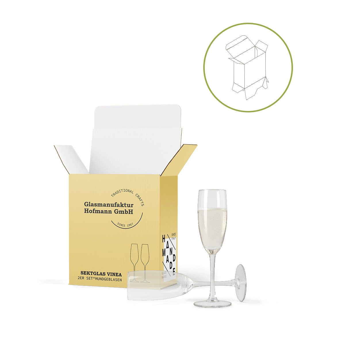 L'intera scatola è costituita da un solo pezzo di cartone ondulato. Sul bordo sinistro è presente un’aletta di colla con una piccola sporgenza che viene incollata al bordo opposto della scatola durante la produzione.