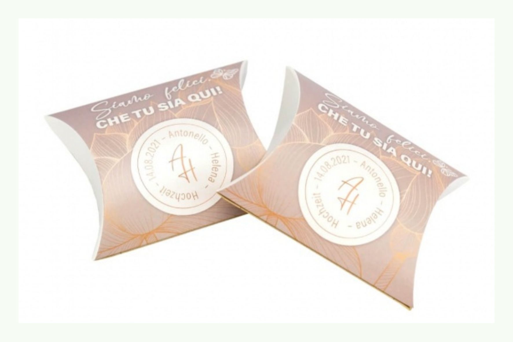 Con le nostre scatole a cuscino puoi scegliere tra diversi materiali in cartoncino in diversi colori. Stampabile digitalmente in quattro colori, tutte le opzioni sono possibili. Una vernice protettiva o un laminato sono disponibili come opzione per un'immagine stampata di qualità ancora più alta e una protezione aggiuntiva per le tue merci.
